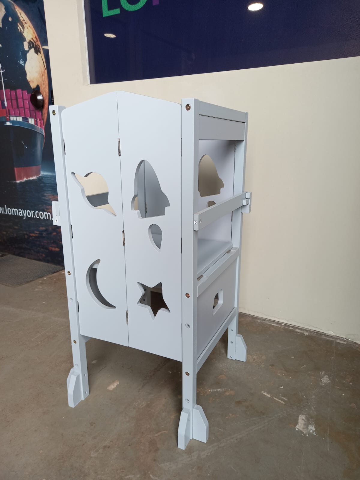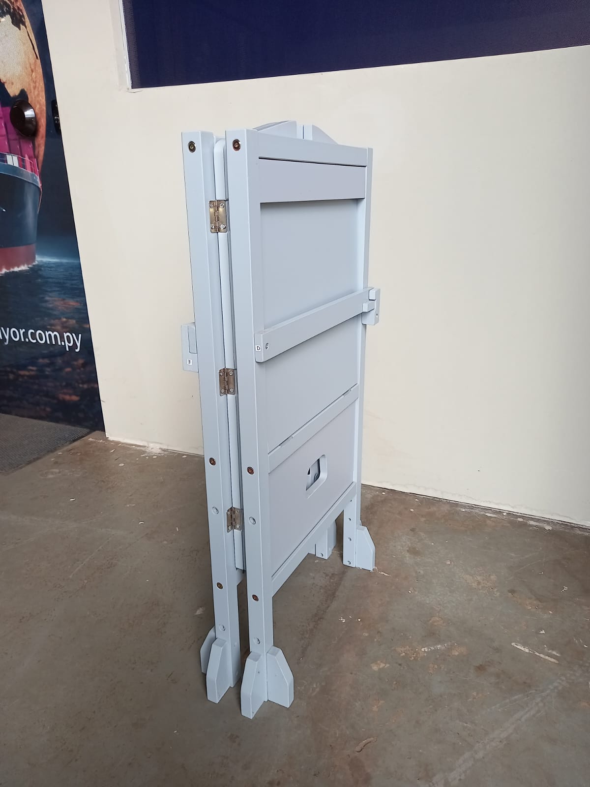 Material: Madera de ingeniería (MDF) con acabados en pintura celeste no tóxica.