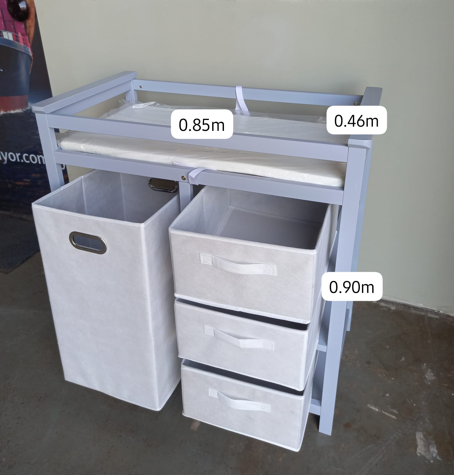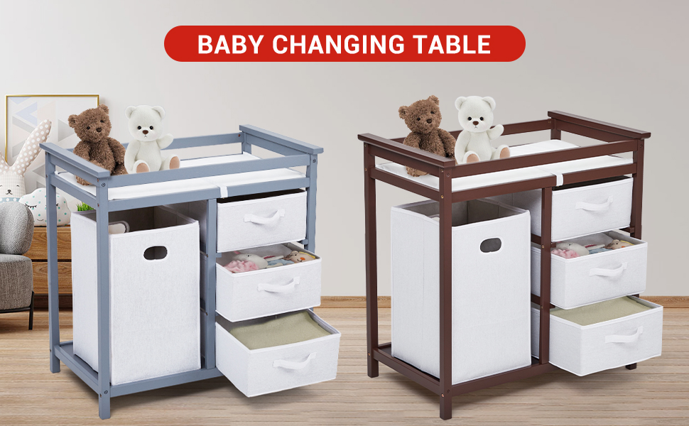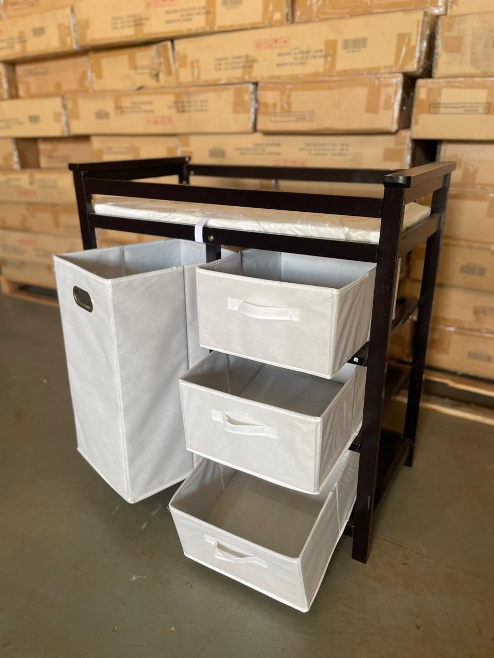 – 3 cajones de tela extraíbles para pañales, toallitas y accesorios
